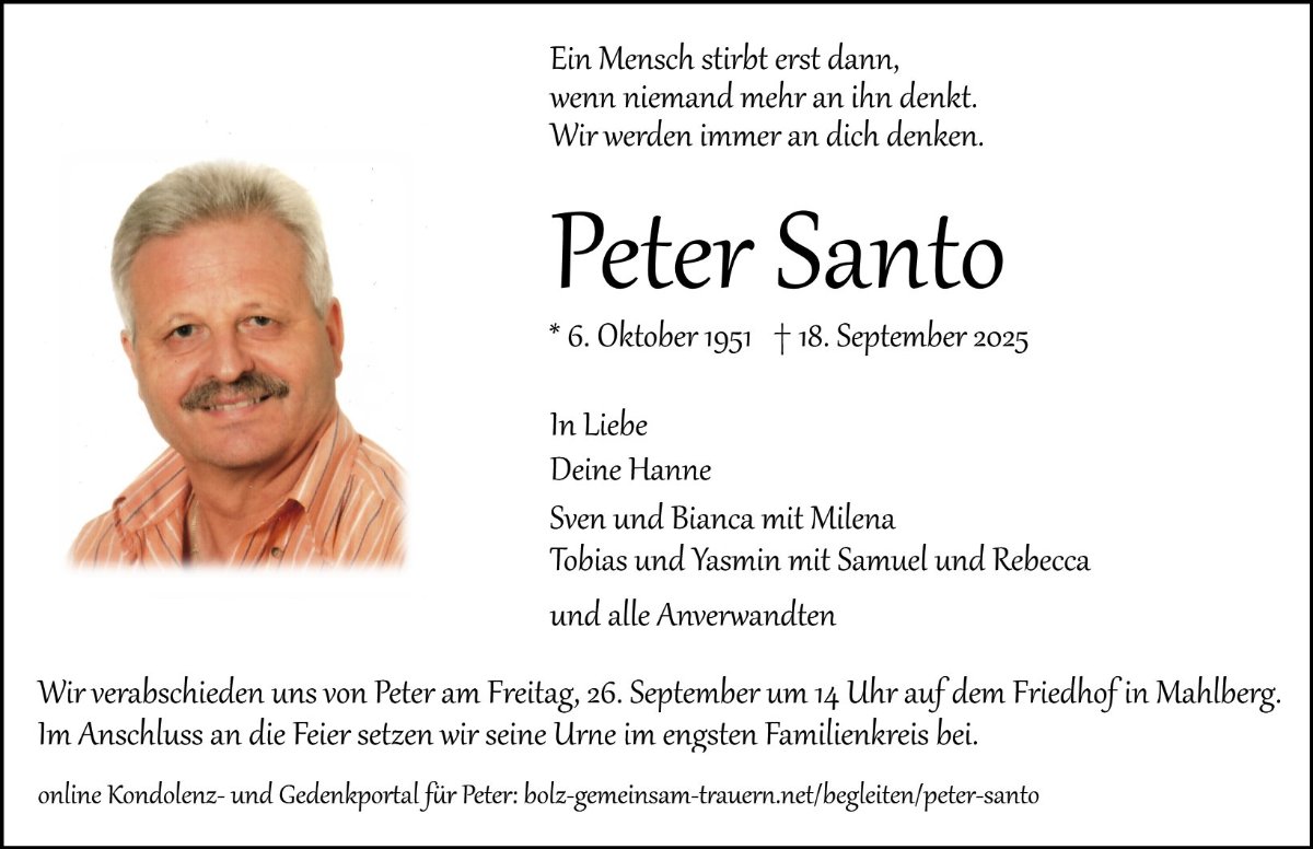 Wir denken an den Peter und wünschen euch Kraft für diese schwere Zeit.